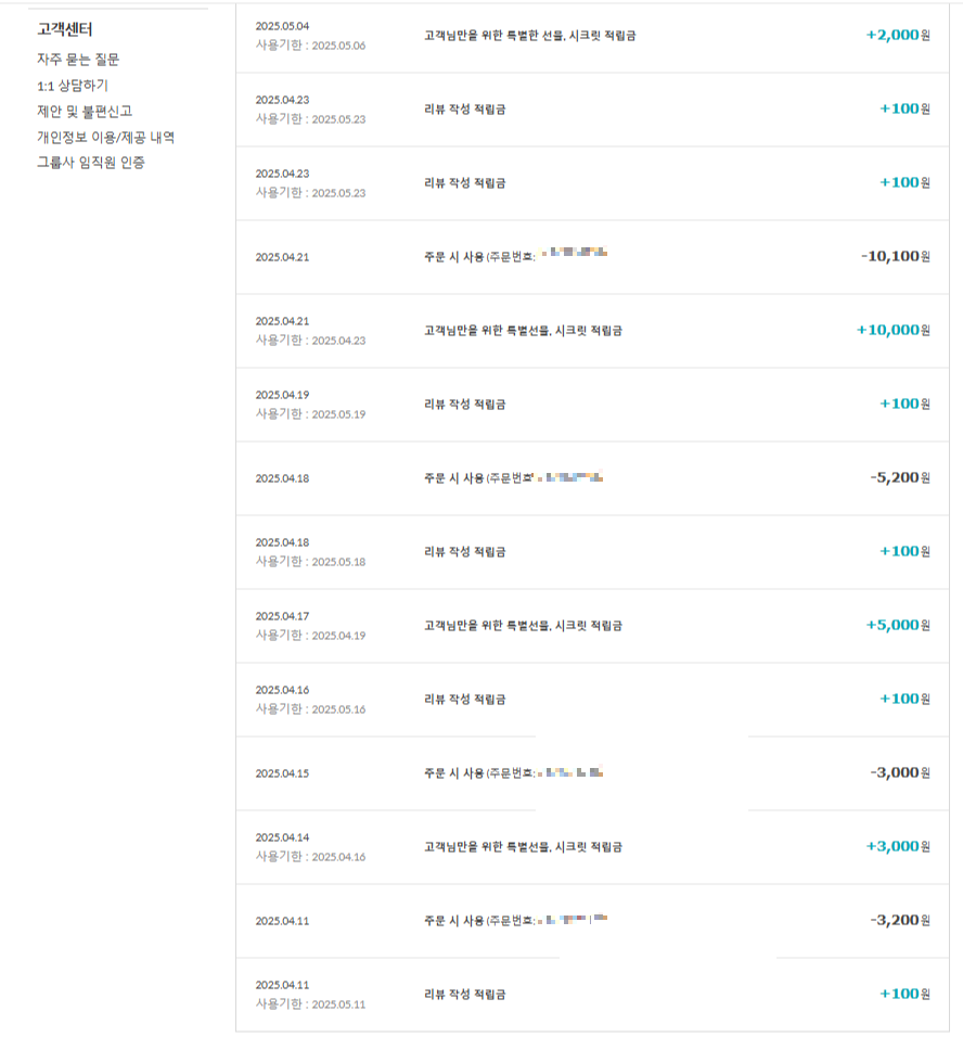 시크릿 적립금이 들어왔을 때 바로 주문