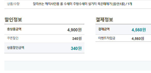 마침 4,900원짜리 매직샤인폼 롤 수세미가 판매 중이라, 0원에 실속있게 구매할 수 있었죠.