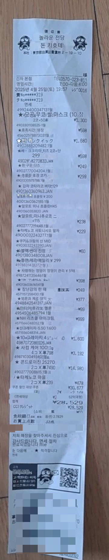 돈키호테에서는 일정 금액 이상 구매 시 면세 혜택을 받을 수 있었는데요.